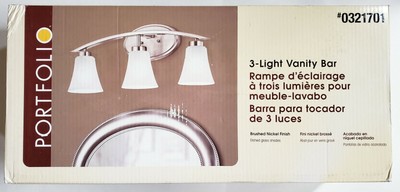 Vanity (2) vanity light (1181) vanity lights (14) availability options. This portfolio brushed nickel halogen vanity light adds a modern edge to your bathroom decor. Its elegant bell shaped frosted glass will complement any decor. Pair this fixture with vintage style bulbs for a nostalgic look. Pair with your choice of shades for a complete and custom look.